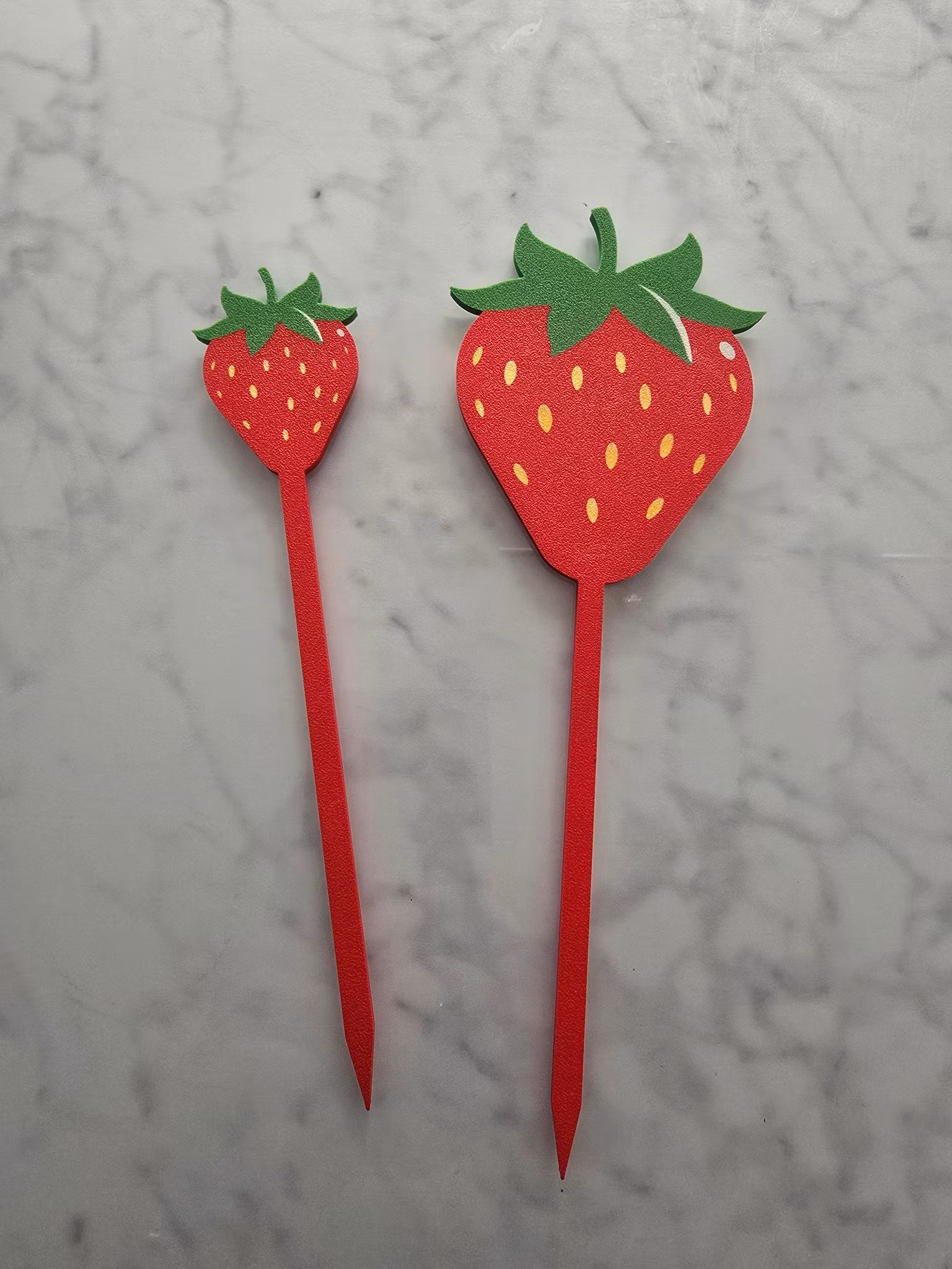 âš Dekorera vĂ€xter, blomlĂ„dor, dörrkransar eller kalas â jordgubbarna sitter pĂ„ en smal pinne som gör dem enkla att placera dĂ€r du vill ha lite extra fĂ€rg och glĂ€dje.