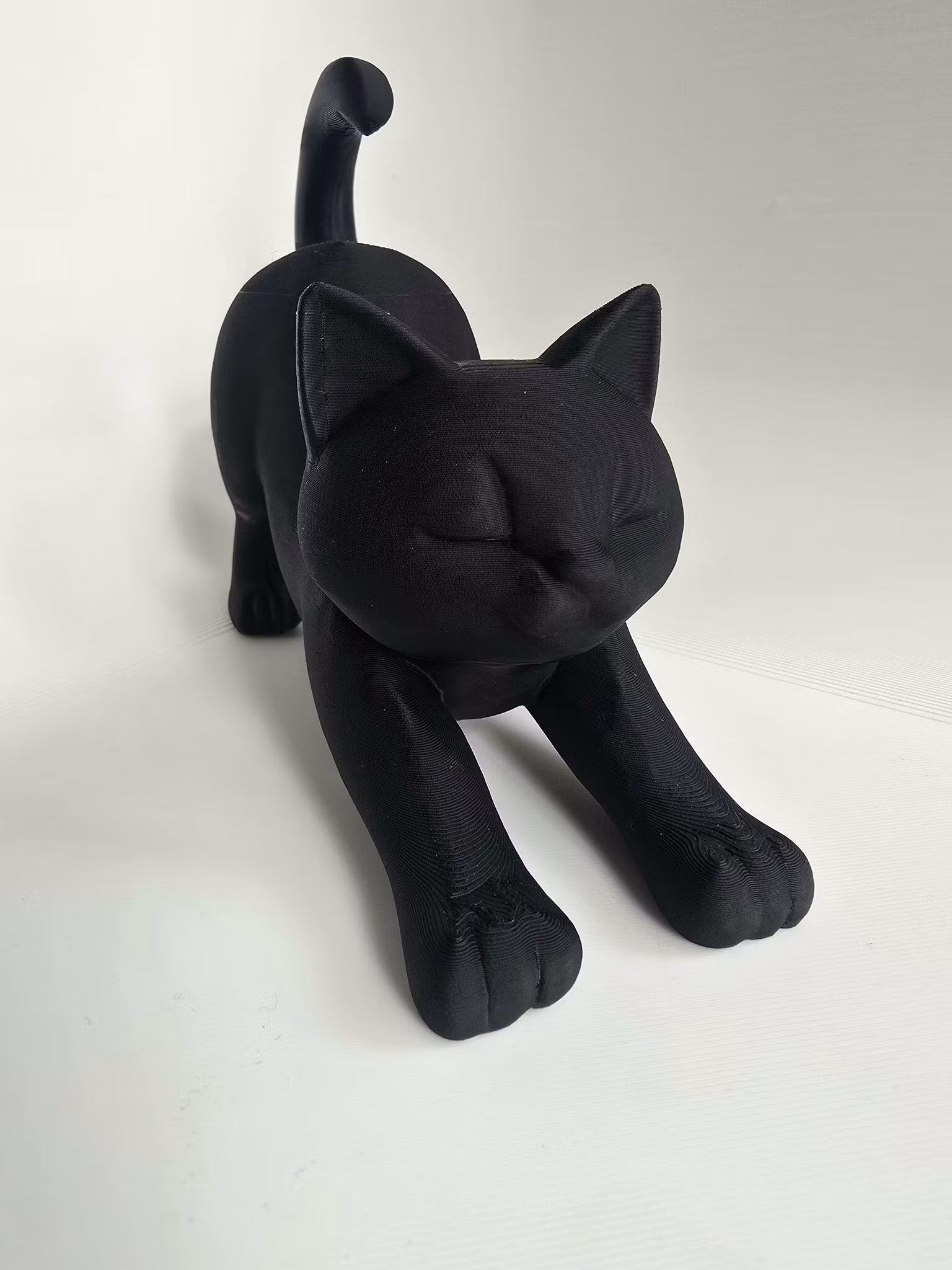 Stretchande katt – 3D-printad dekor i elegant svart PLA