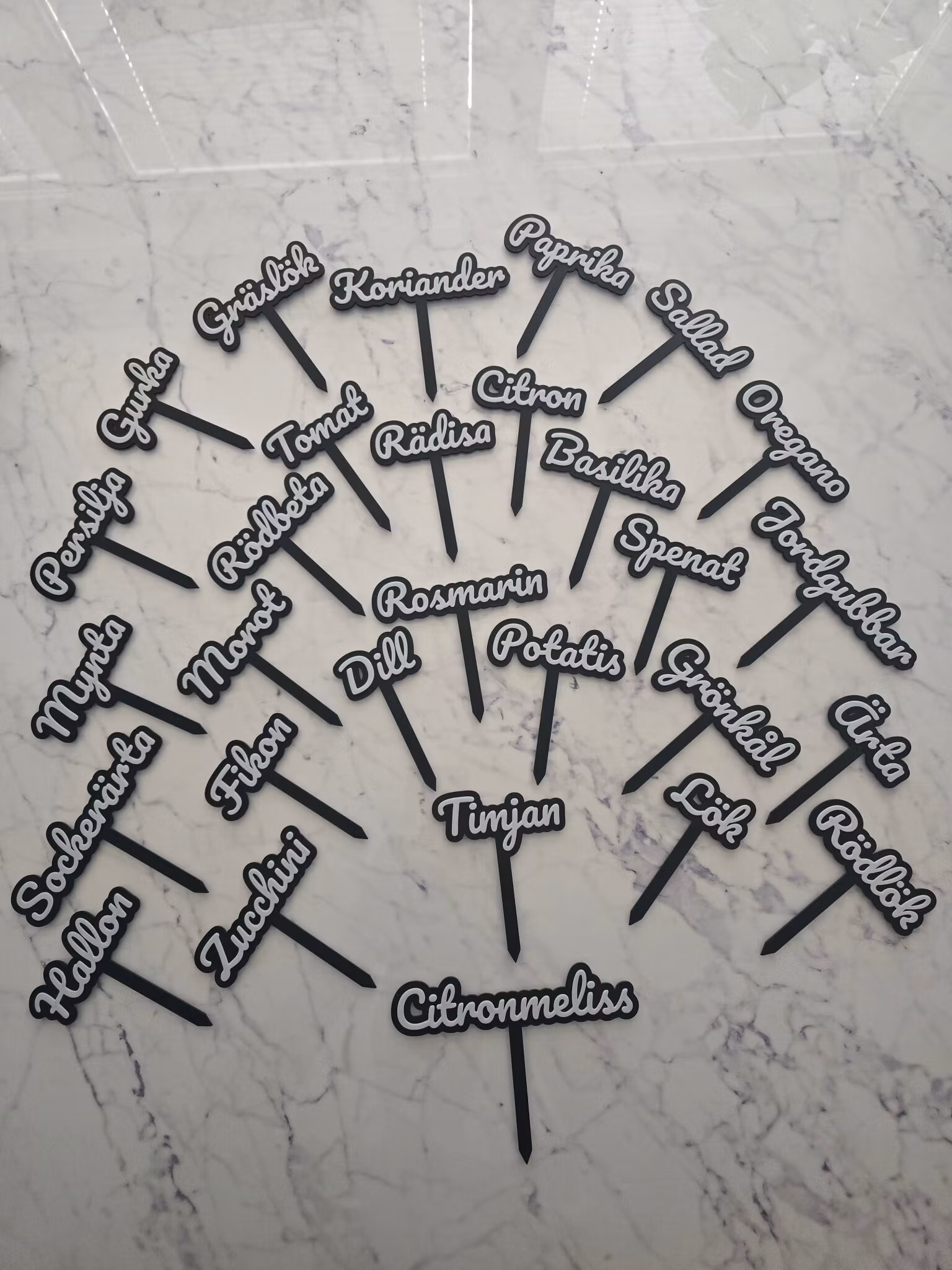 Gör din odling både snyggare och smartare med våra 3D-printade planteringsskyltar! Med tydlig, lättläst text i en charmig skrivstil blir det enkelt att hålla koll på vad som är vad i pallkragar, krukor eller trädgårdsland.
