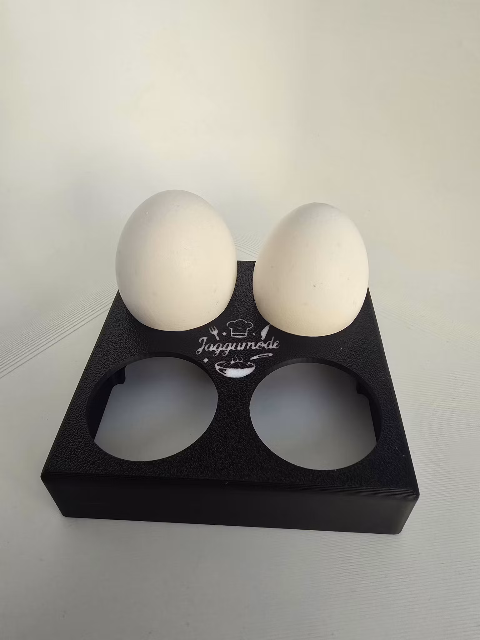 Ge frukostbordet ett lyft med denna stilrena ägghållare i svart design och tydlig Jaggumode-logga. Välj mellan plats för 4 eller 6 ägg, perfekt för både vardagsmorgnar och helgfrukostar.