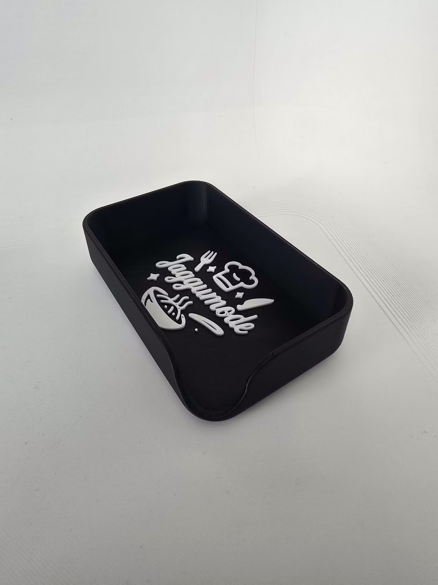 Lyft diskbänken med Jaggumode Tvål- & Svamphållare – en praktisk och stilren lösning för att hålla din disksvamp eller handtvål på plats. Med den ikoniska loggan i upphöjd vit design blir detta mer än bara en hållare – det blir en köksdetalj med attityd.